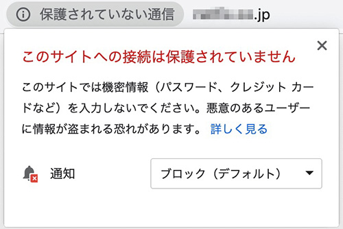 Google Chromeによる「保護されていない」との警告が表示されれば、ユーザーは不安になります。せっかくアクセスしてもらっても、すぐに立ち去ってしまうかもしれません。
